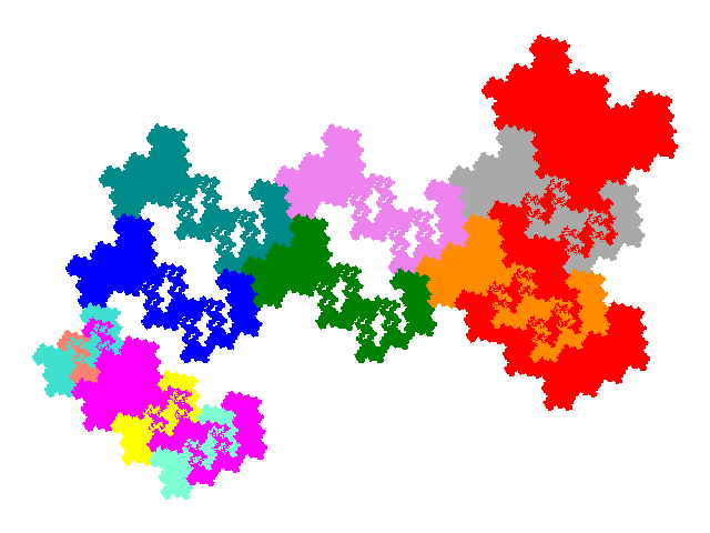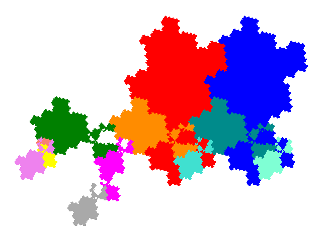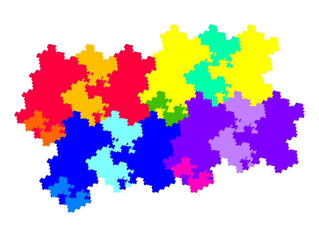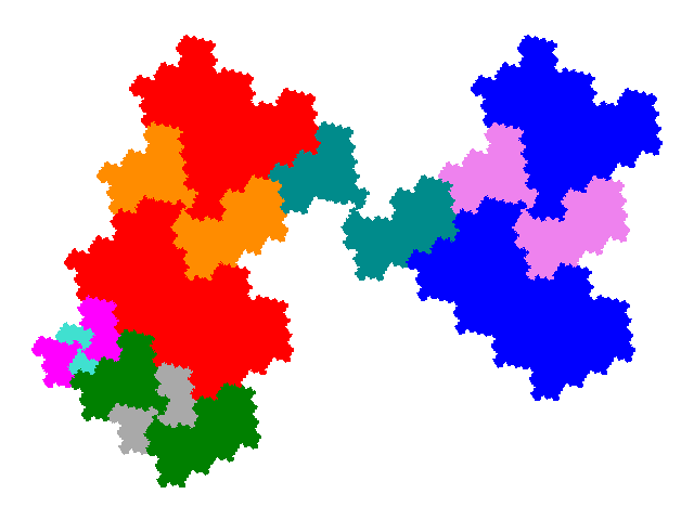 From this 5 order 9 and 7 order 13 tiles can be derived. (The other 3 candidate order 13 tiles turn out to not be connected, though they still have a similarity dimension of 2 and tile the plane.) Order 17, 21, 25, 33, 37, 41, 45, 49, 61, 65, ... tiles can also be generated.