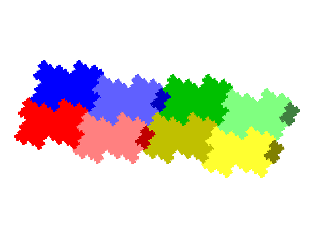As this tile has c2 symmetry it is 8- (23-)fold degenerate - each of the three elements can be placed in one of two orientations. For the same reason the grouped element technique can be used to generate 2 demi-symmetric tiles.